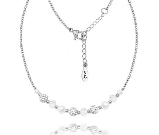 1668 naszyjnik ślubny srebro 925 z perłami, kryształkami i kuleczkami disco ball srebrny