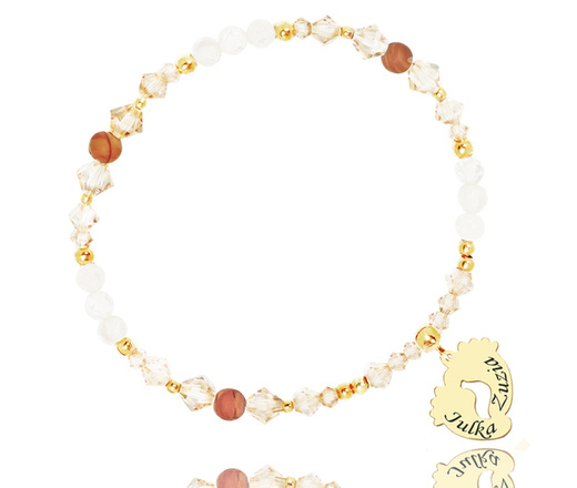 1373/1 bransoletka grawerowana srebrna 925 złocona kamienie naturalne pastelowy