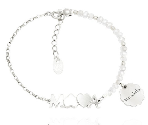 1112 BRANSOLETKA Z GRAWEREM złota perełki naturalne Mama dla mamy