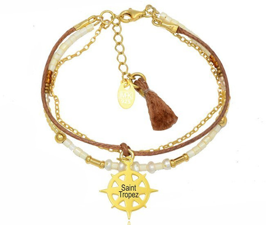 1263 bransoletka grawerowana róża wiatrów srebro 925 pozłacane