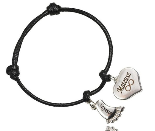 BR965 BRANSOLETKA z grawerem na sznureczku serce stópki infinity