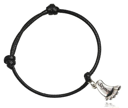 BR973 bransoletka na sznureczku z grawerem stópka serce