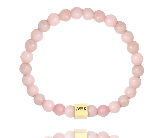 1734/8 różowo-beżowa bransoletka pozłacana z grawerem i kamieniami naturalnymi Premium