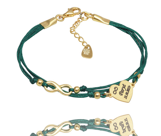 1598 bransoletka grawer serduszko i nieskończoność, srebro 925 pozłacane