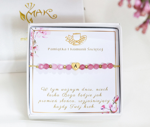 prezent na Komunię dla dziewczynki bransoletka z grawerem zestaw 1803/1