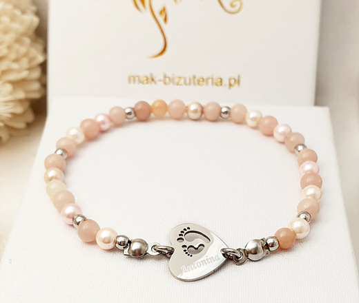 Bransoletka grawerowana i sercem ze stópkami kamienie naturalne 1889