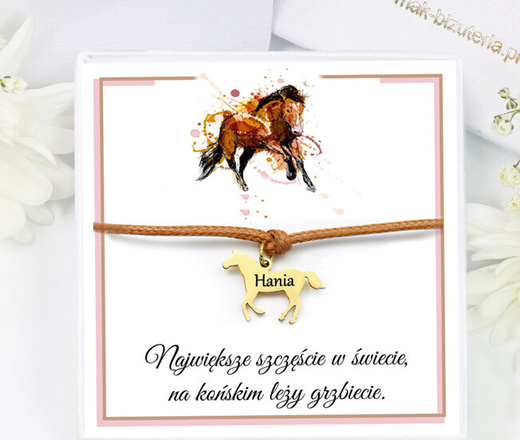 1421 bransoletka Konik z grawerem srebrna 925 pozłacana na sznureczku