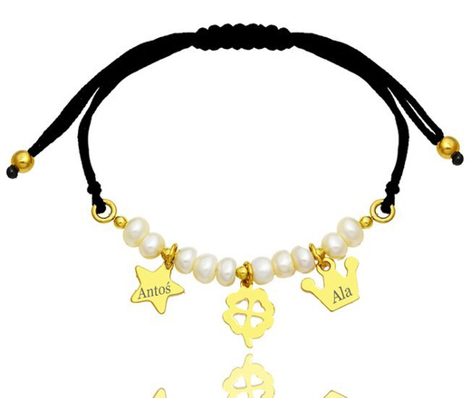 1179 BRANSOLETKA Z GRAWEREM 925 złota perełki korona koniczynka gwiazdka