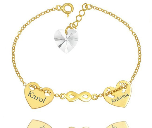 1124 bransoletka grawerowana ze złote stópki, infinity nieskończoność