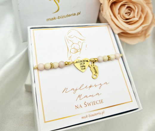 zestaw bransoletka dla mamy z grawerem i kamieniami naturalnymi Premium 1734/10