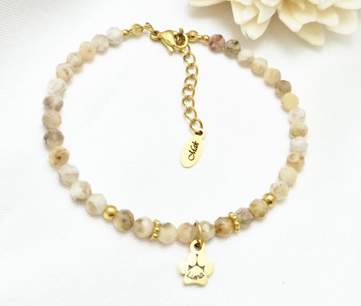 bransoletka z grawerowaną łapka beżowe kamienie naturalne