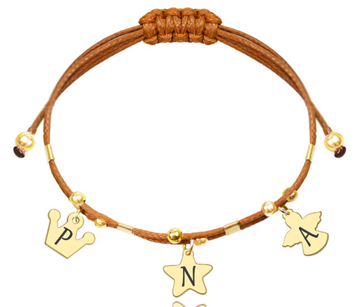 1292 bransoletka stal szlachetna na sznureczkach zawieszki literki