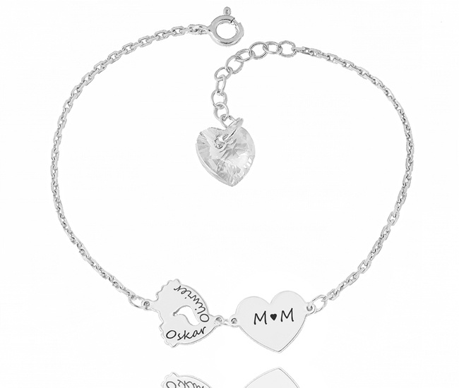1481 bransoletka srebrna 925 z grawerem serce stopki
