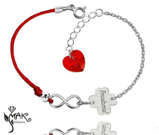 BR900 BRANSOLETKA Z GRAWEREM sznurek infinity Swarovski Elements koniczynka