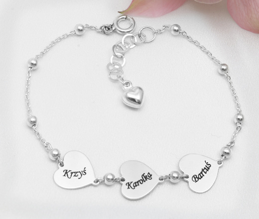 1641/2 bransoletka grawerowana srebro 925 kuleczki serce