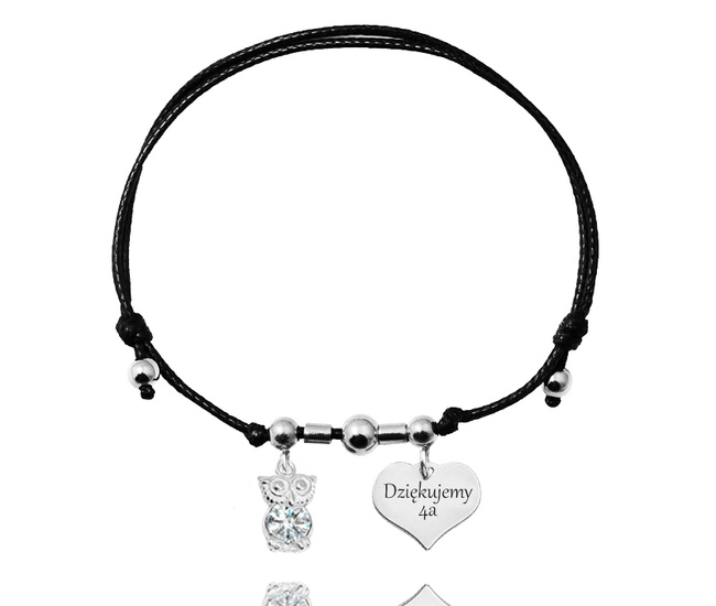 Bransoletka z grawerem srebrna na sznurku dla nauczyciela sowa 1814/4