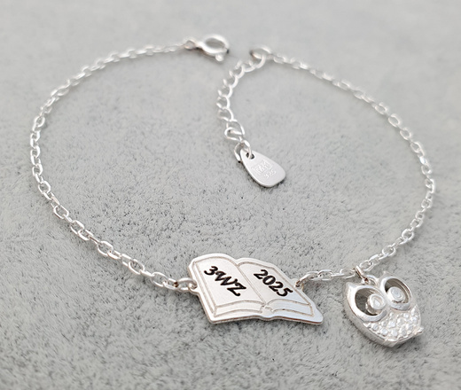 bransoletka srebrna 925 grawerowana książka i sowa 1482