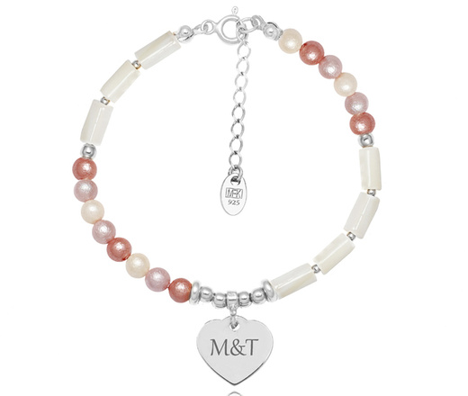 1305 bransoletka grawerowana z serduszkiem beads srebrna różowa