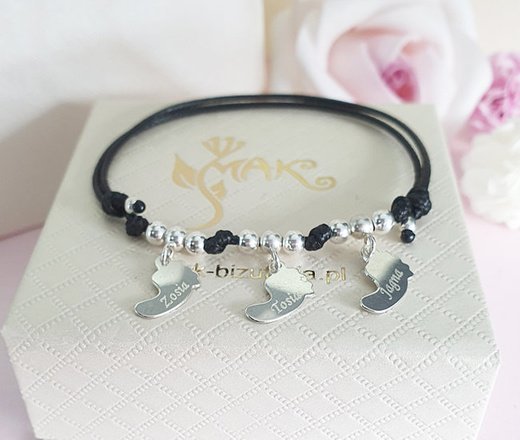 1442 bransoletka z grawerem srebrna na sznureczku