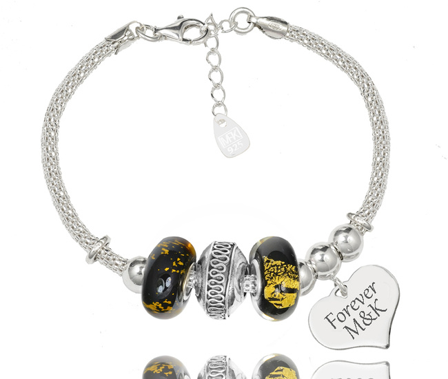 1305 bransoletka grawerowana z serduszkiem beads srebrna czarna