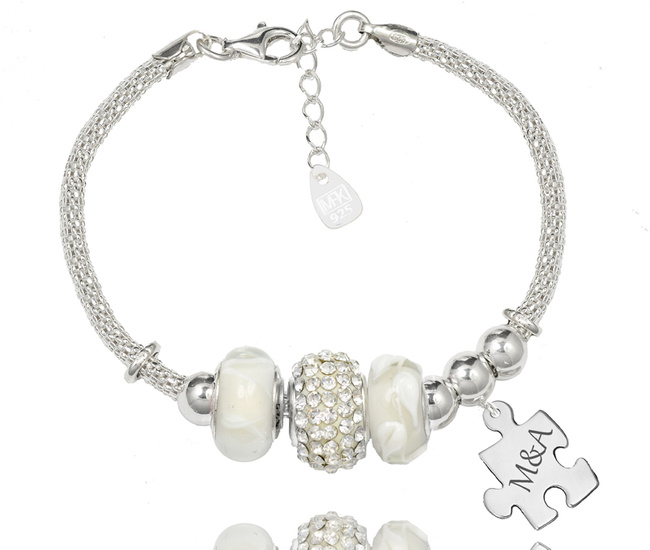 1305 bransoletka grawerowana z puzzlem beads srebrna biała