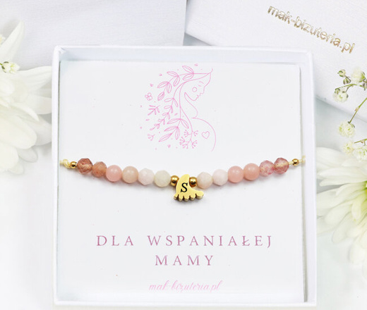 1732/1 bransoletka złocona z grawerem i kamieniami naturalnymi dla mamy