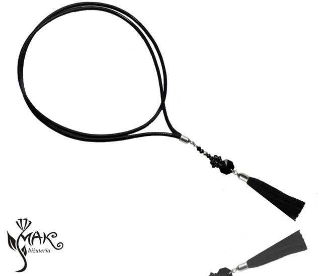 NK819 NASZYJNIK choker srebro 925 czarny sznurek Swarovski Elements CHWOSTY