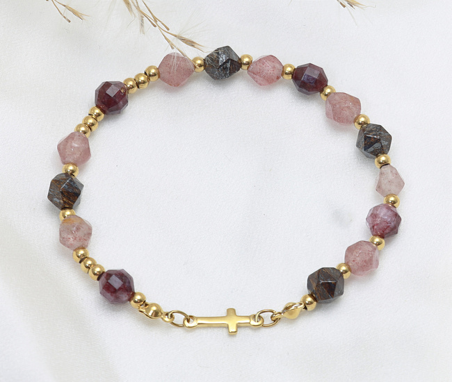 Bransoletka różaniec pozłacana kwarc truskawkowy 1758/15