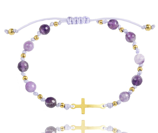 1671/3 bransoletka różaniec z ametystem pozłacana