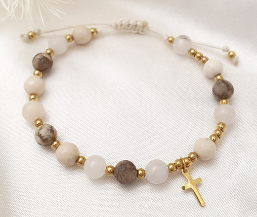 1631/12 bransoletka różaniec stal złocona z kamieniami naturalnymi