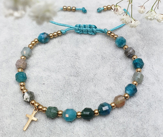 Bransoletka różaniec z krzyżykiem błękitny jadeit 1877/8