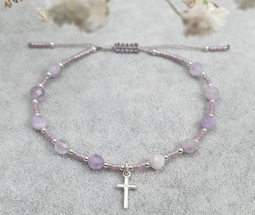 1571/4 bransoletka różaniec z ametystem lawendowym srebro 925