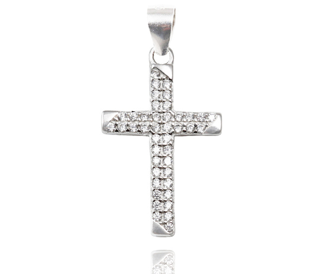 113/7 wisiorek krzyżyk z cyrkoniami srebrny 925