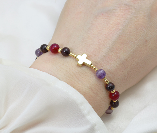 bransoletka różaniec z granatem stal złocona bordowa 1877/16