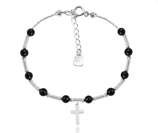 1571/18 bransoletka różaniec srebrna z kryształkami i krzyżem