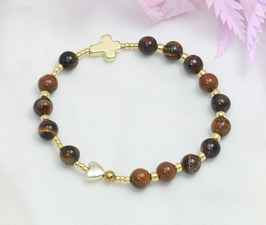 bransoletka różaniec brązowy - tygrysie oko 1888/2