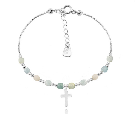 1571/22 bransoletka różaniec srebro 925 z kryształkami i krzyżem