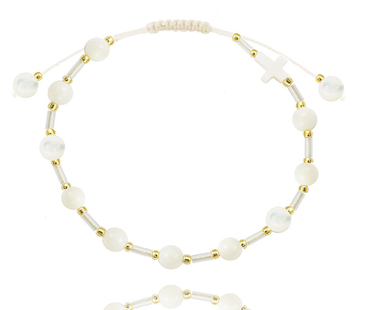 1631/10 bransoletka różaniec na sznureczku z koralikami i krzyżem z masy perłowej