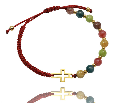 1571/6 bransoletka różaniec stal złocona z kamieniami naturalnymi