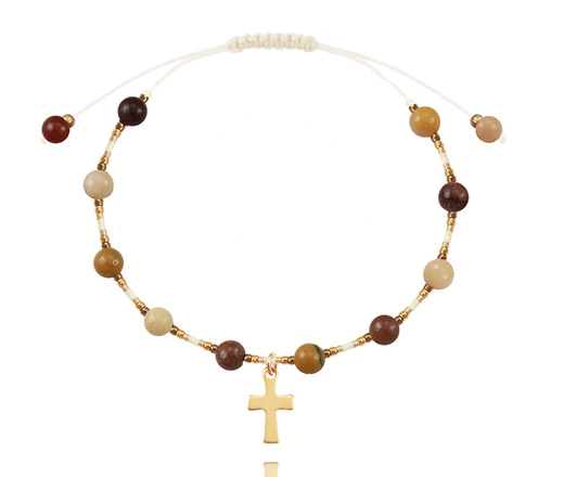 1627/6 bransoletka różaniec stal pozłacana na sznureczku z kamieniami naturalnymi jaspis