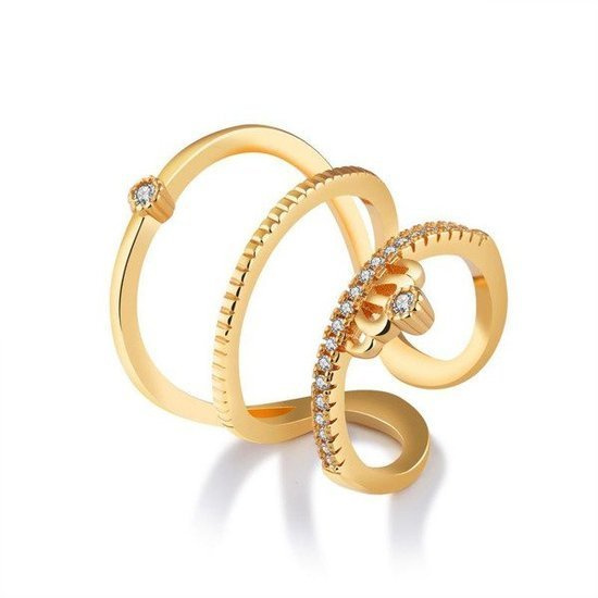 p599/440 PIERŚCIONEK złocona obrączka liść cyrkonie roz. 17