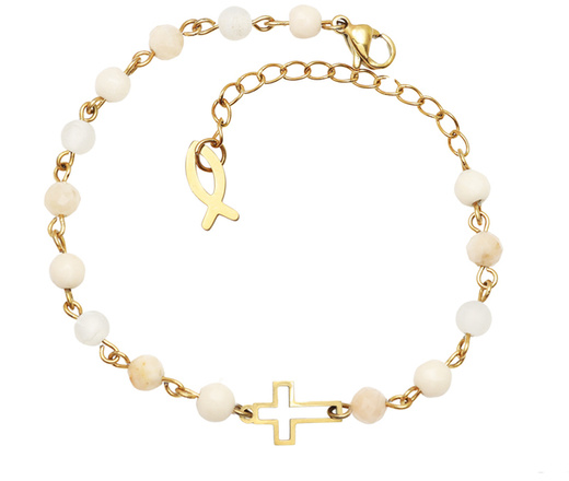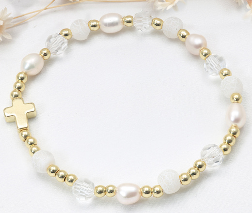 1737/7 bransoletka różaniec złota ecru, kremowa