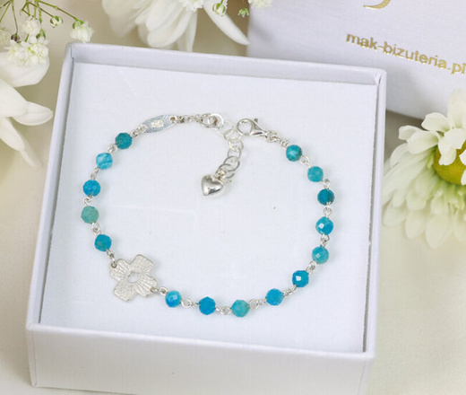 1728/4 bransoletka srebrna 925 z apatytem kamienie naturalne