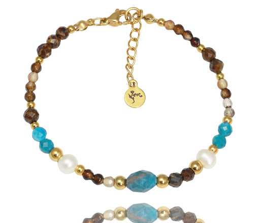 1734/7 brązowa bransoletka pozłacana z grawerem i kamieniami naturalnymi Premium