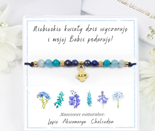 1746/2 niebieska bransoletka z kamieniami naturalnymi i grawerem dla babci zestaw