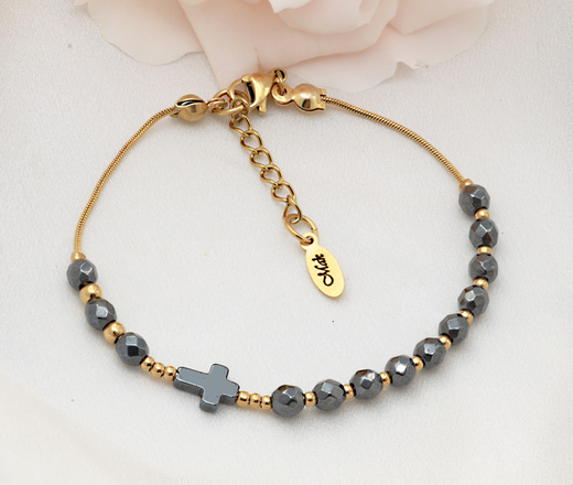 1733/1 bransoletka z hematytami pozłacana elegancka