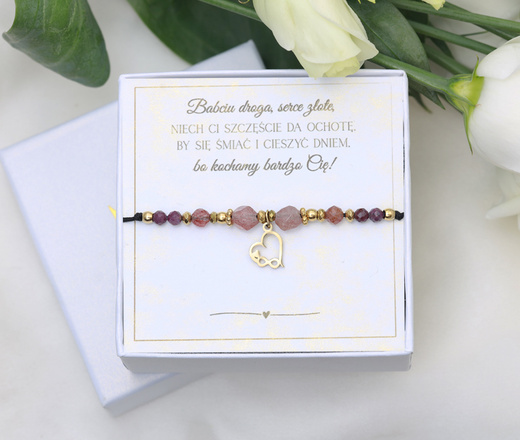 ( ilość produktów: 22 )Bransoletka dla Babci kwarc truskawkowy pudełko z dedykacją 1897/2