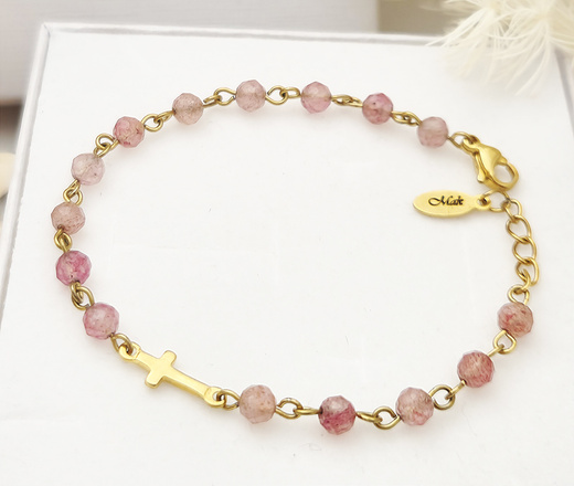 Bransoletka różaniec pozłacana kwarc truskawkowy 1758/15