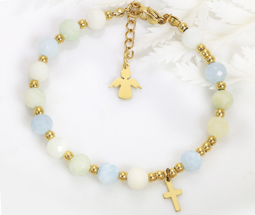 Naszyjnik z krzyżem i kamieniami naturalnymi (morganit) 1799/9