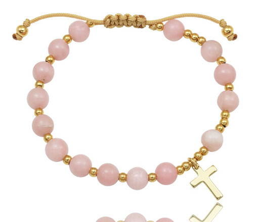 1737/1 różowa bransoletka różaniec złocona z opalem różowym